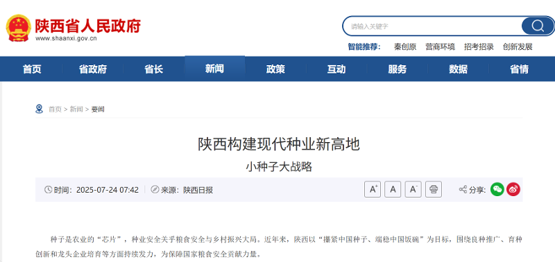 【陕西日报】小种子大战略——陕西构建现代种业新高地
