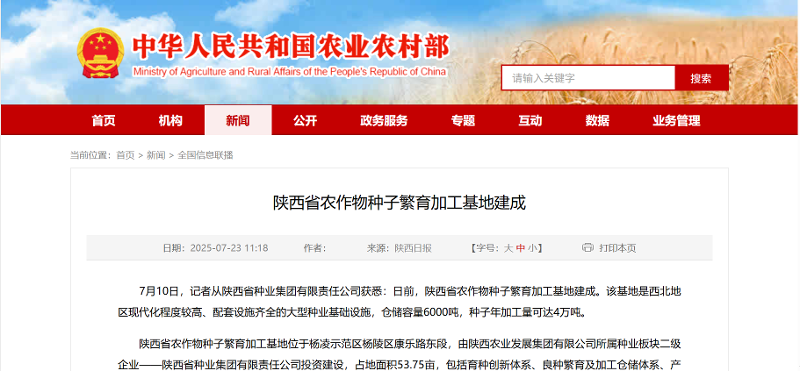 【农业农村部】陕西省农作物种子繁育加工基地建成