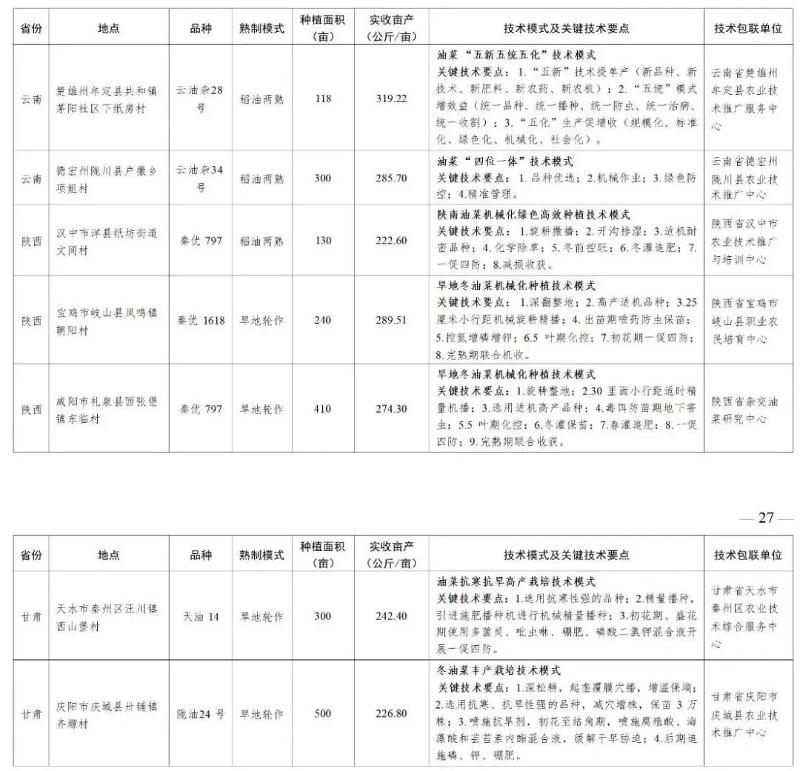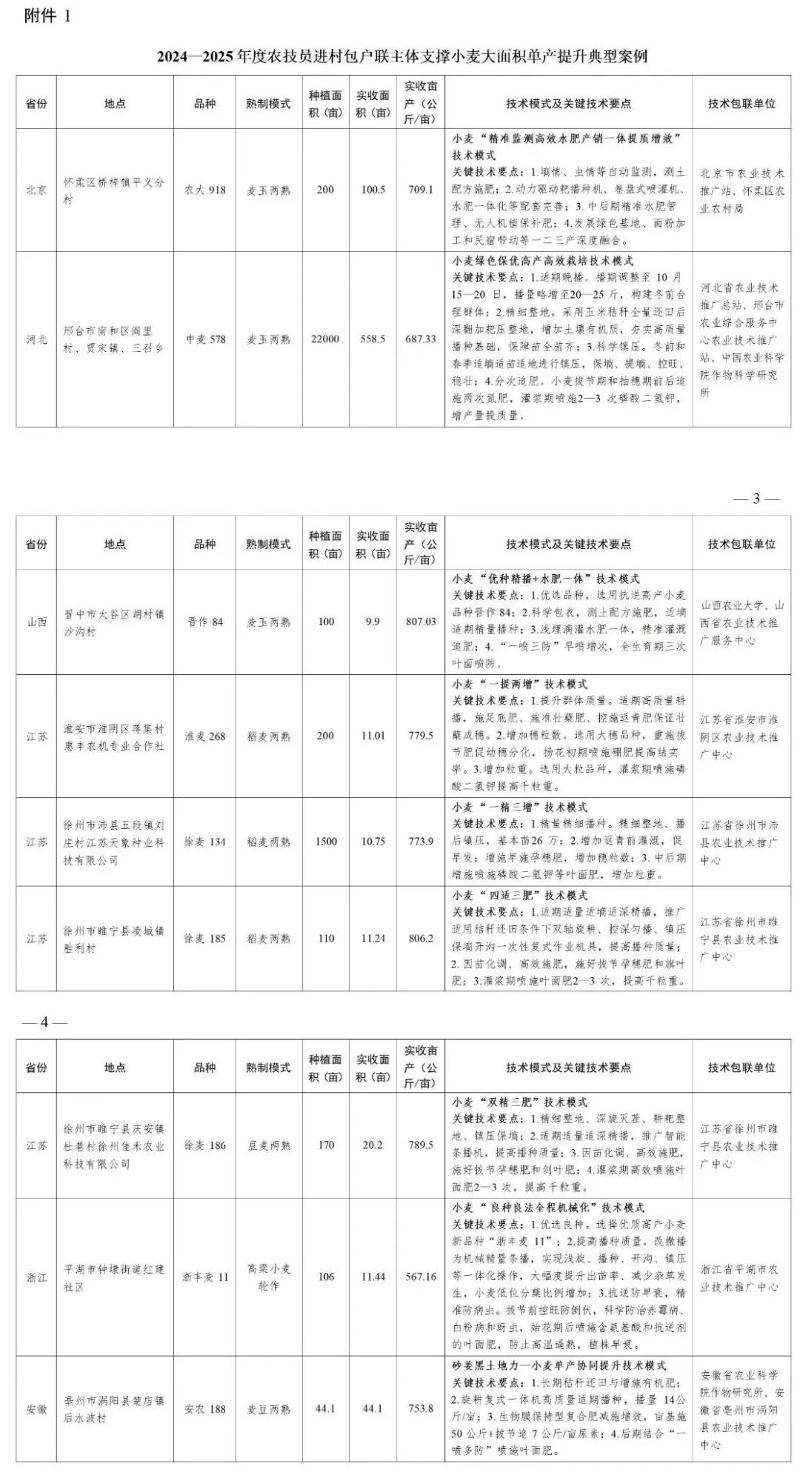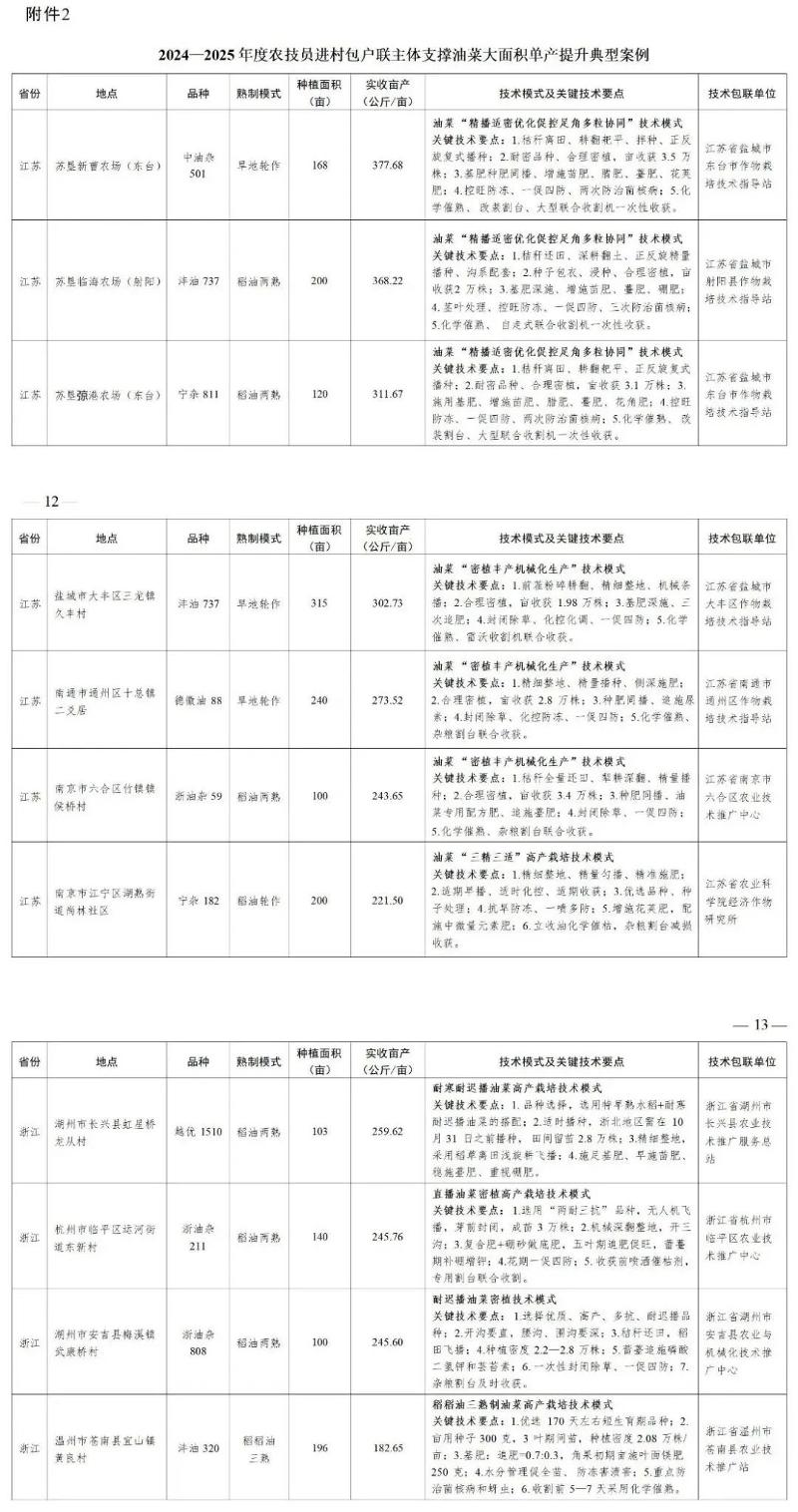 为扎实推进全国粮油作物大面积单产提升行动,落实落细农技员进村包户联主体单产提升农技行,充分挖掘宣传各地典型模式,切实发挥好模式好经验好做法的辐射引领作用,现将征集的24个小麦、67个油菜大面积单产提升典型案例予以印发(见附件)。